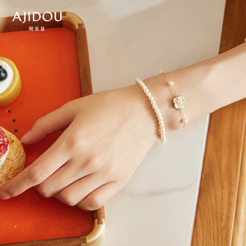 山茶花シリーズ人工真珠ダブルチェーン重ね付けブレスレット
