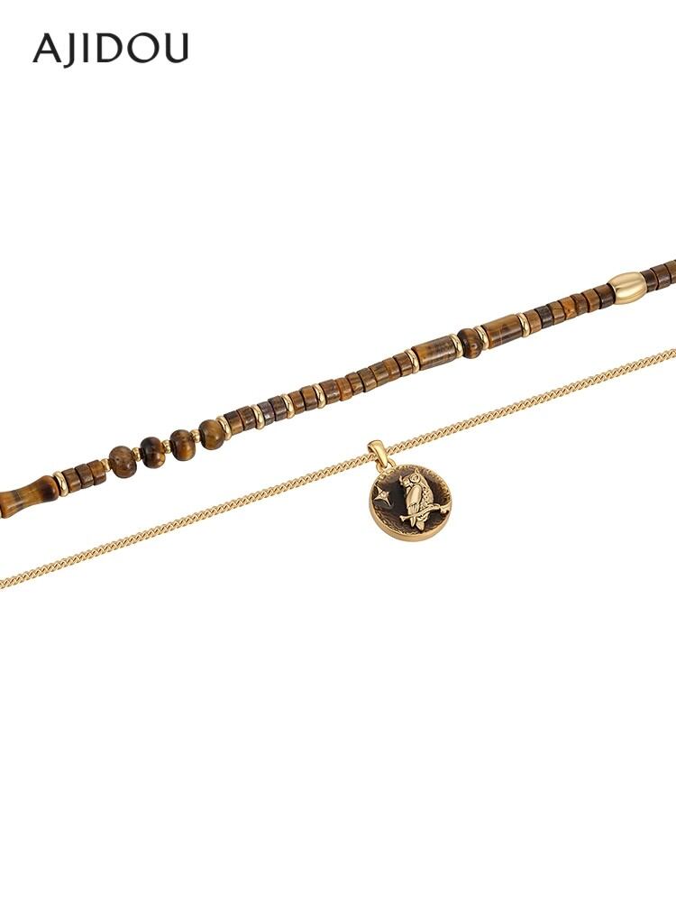 AJIDOU(アジドウ)旷野守望シリーズのダブルレイヤー重ね付けネックレス、ファッショナブルなチョーカー、トレンディでクールな雰囲気 AA24J0193A70