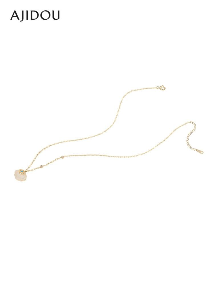 AJIDOU(アジドウ)925シルバーの玉髓ペンダントネックレス。ファッション性のある鎖骨チェーンで、シンプルな国風スタイルのアクセサリー AA24H0128C70