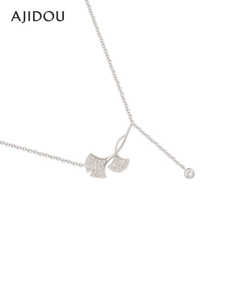 AJIDOU(アジドウ)925シルバーの女性用ネックレス。ファッショナブルな鎖骨チェーンに銀杏の葉のペンダントがついた気品あるアクセサリー AA24B0165B10