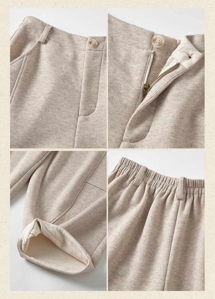 カジュアルでゆったりとしたワイドストレートパンツ。両側の曲線的な構造線が、視覚的に巧みに分割され、温かみがありつつ遊び心のあるスタイルを演出します。