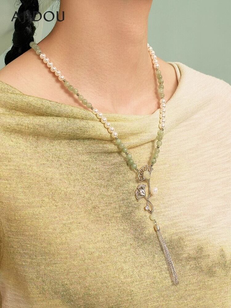 AJIDOU ゴールデンエコーシリーズ エレガントで気品のある フェイクパールネックレス AA24B0174A30