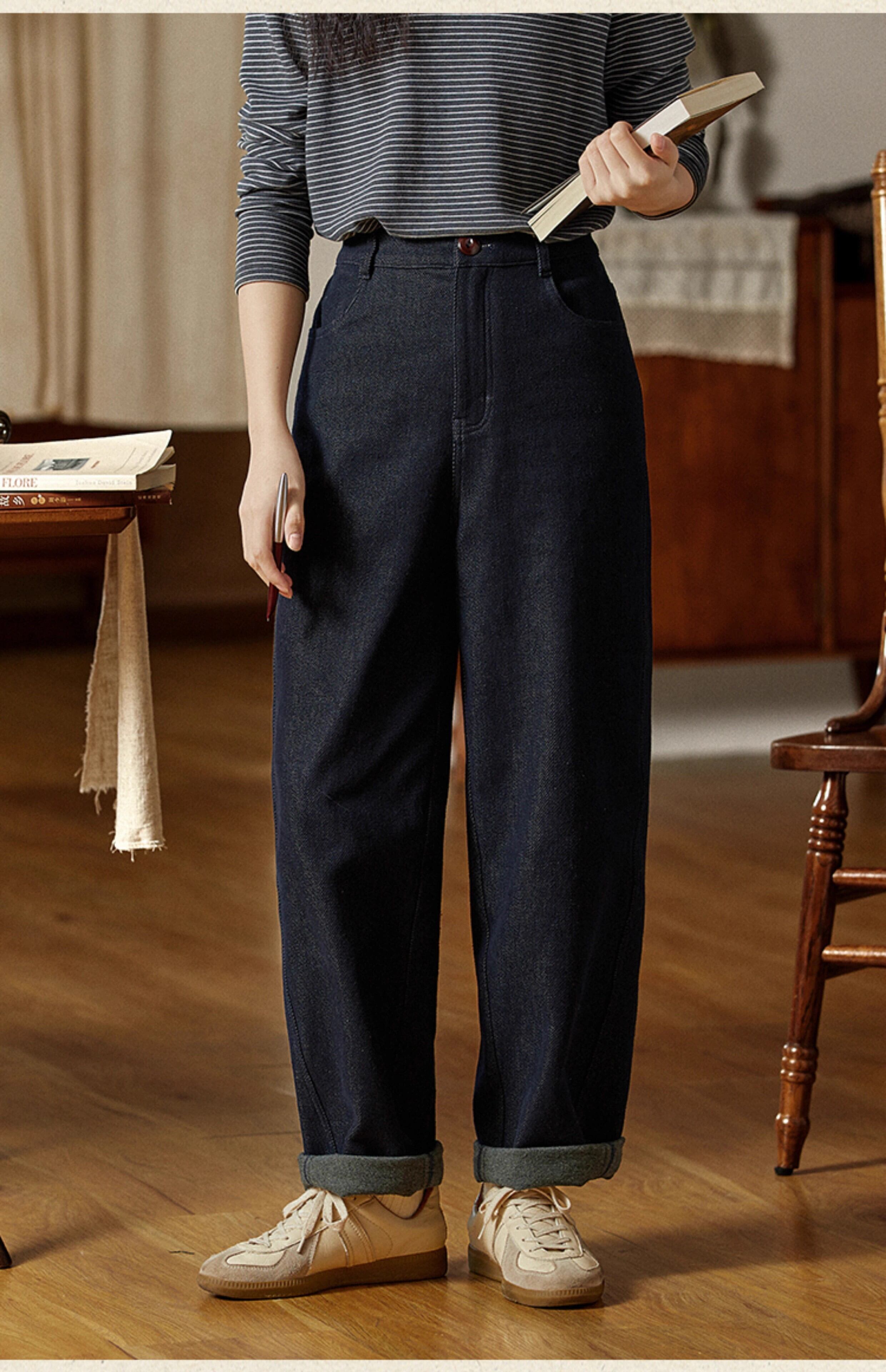 パンツ ヴィンテージネイビー ジーンズ レディース 秋冬 カジュアル コーディネート 厚手パンツ ストレートパンツ 08NZ24616