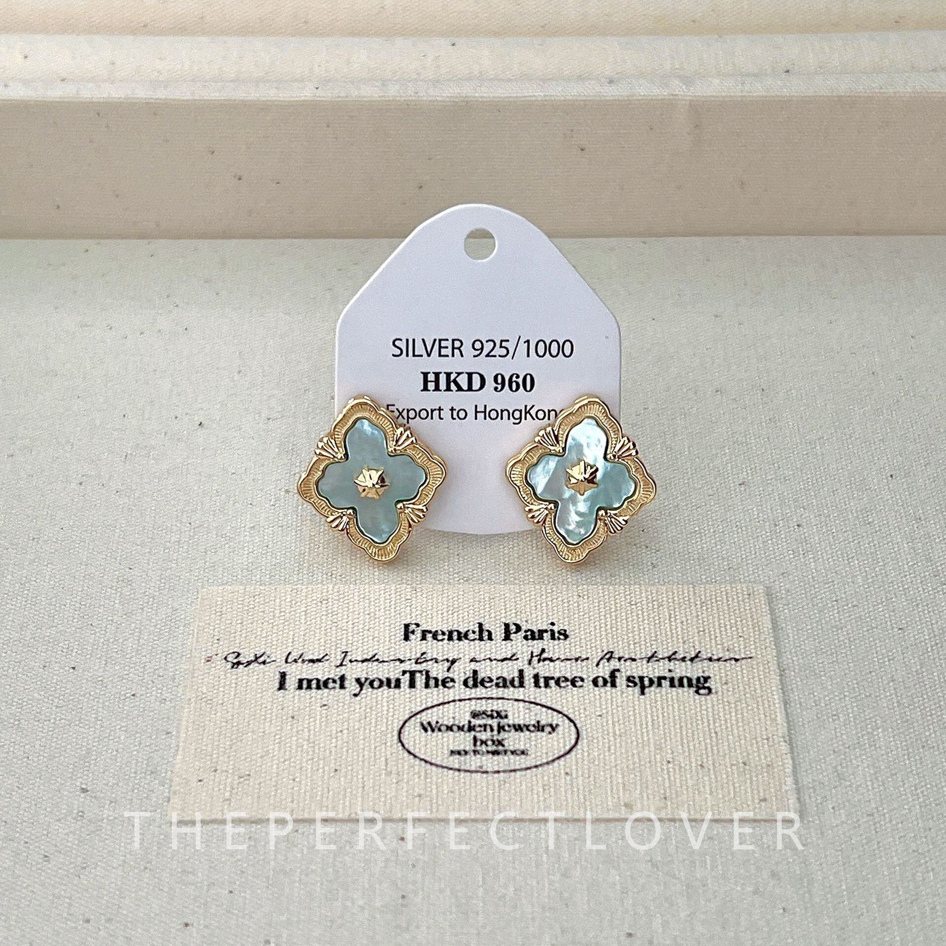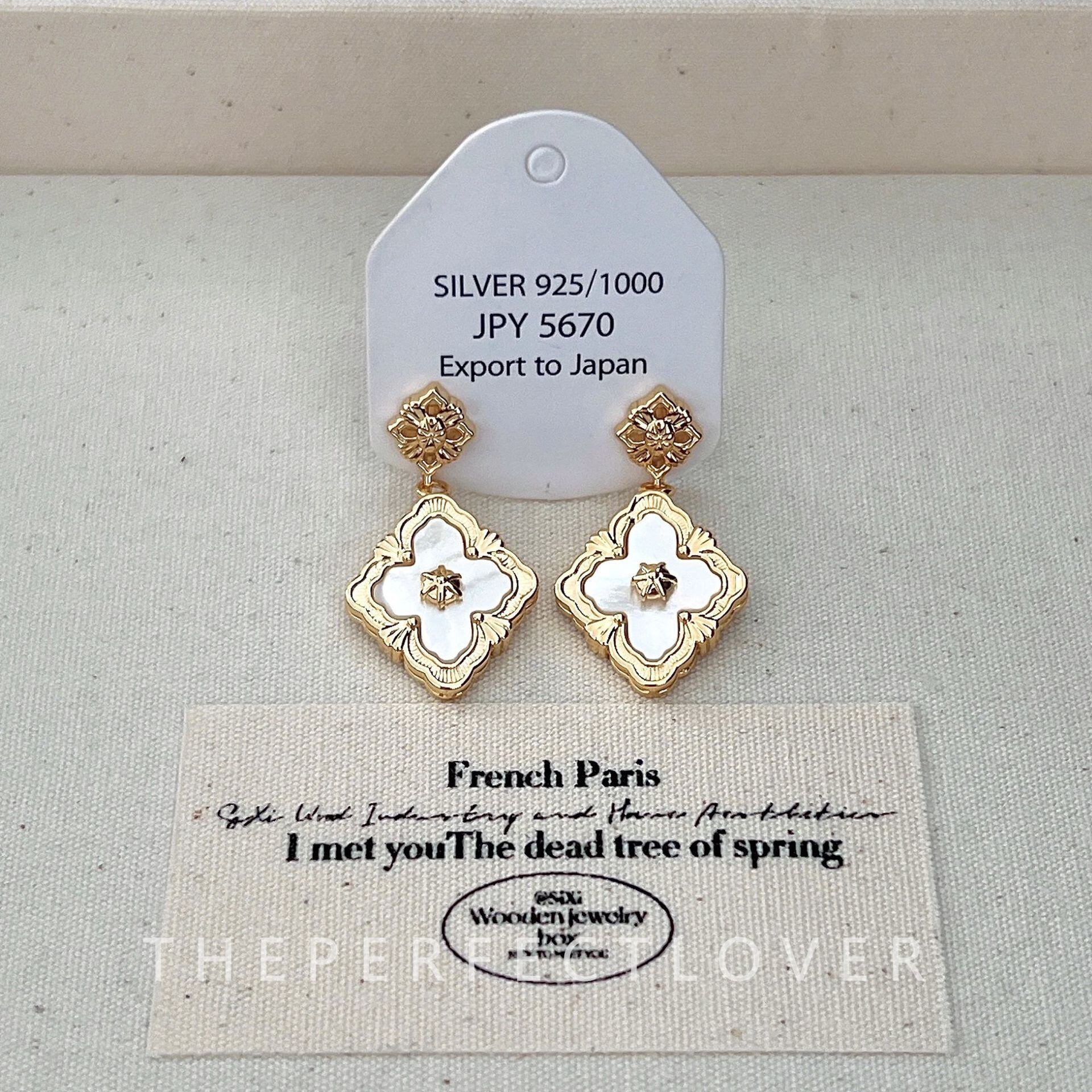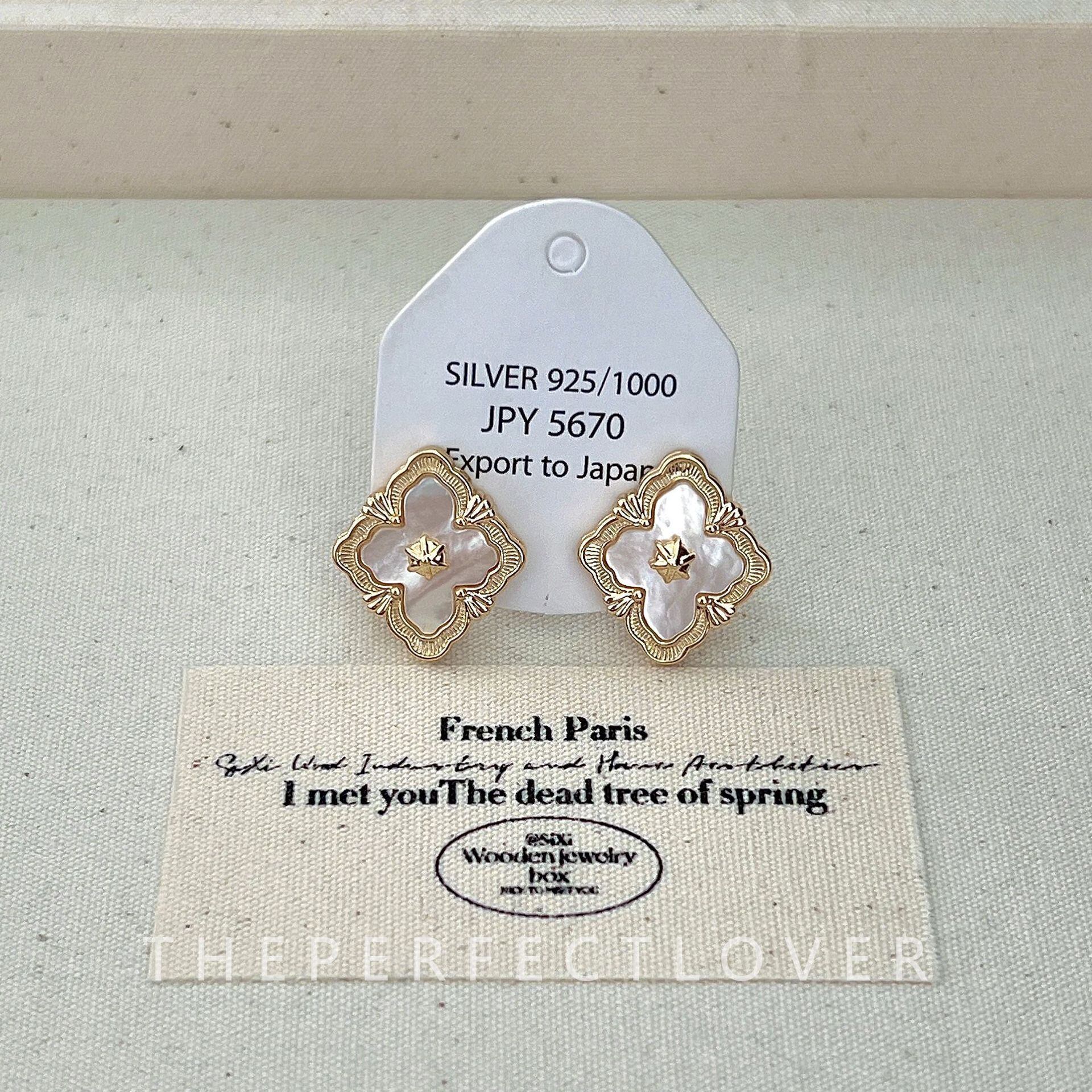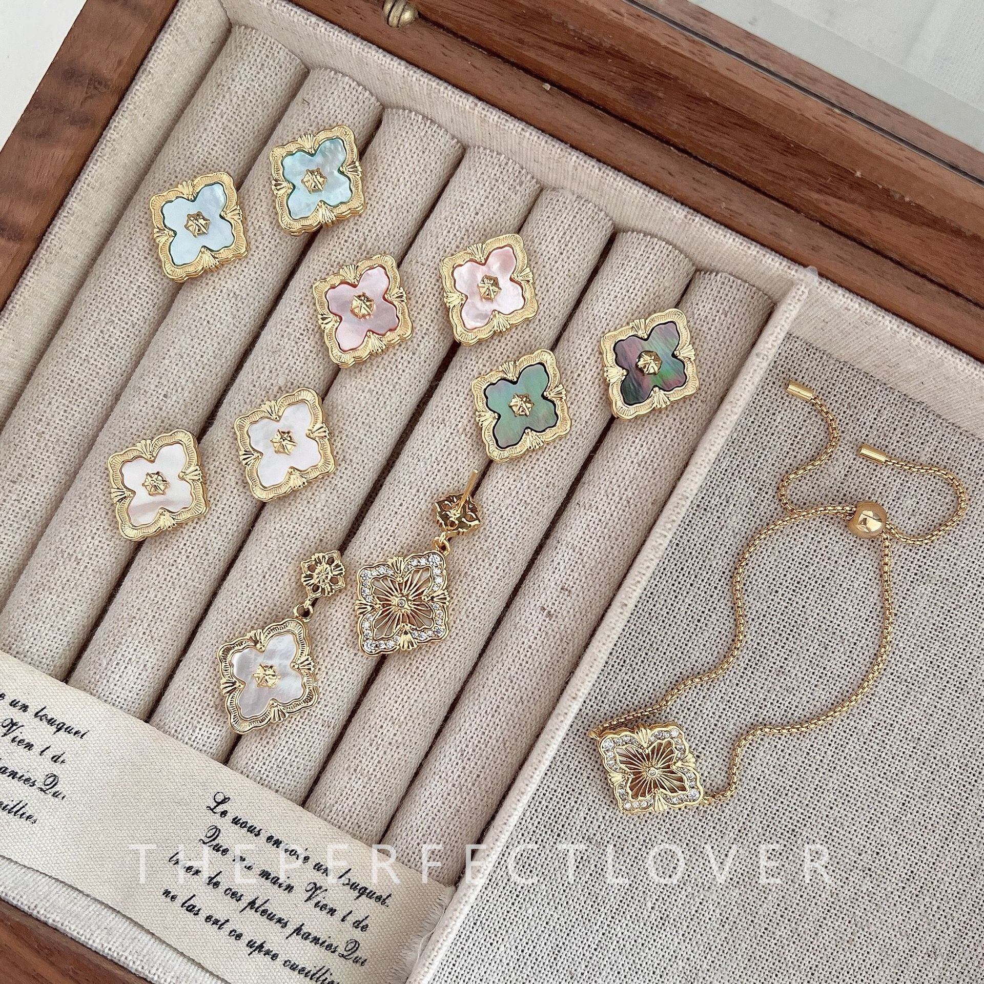 フレンチレトロ風 両面シェル キュービックジルコニア ピアス&ブレスレットセット 東大門 おしゃれ 通勤用 高級感 アクセサリー TNSK0050