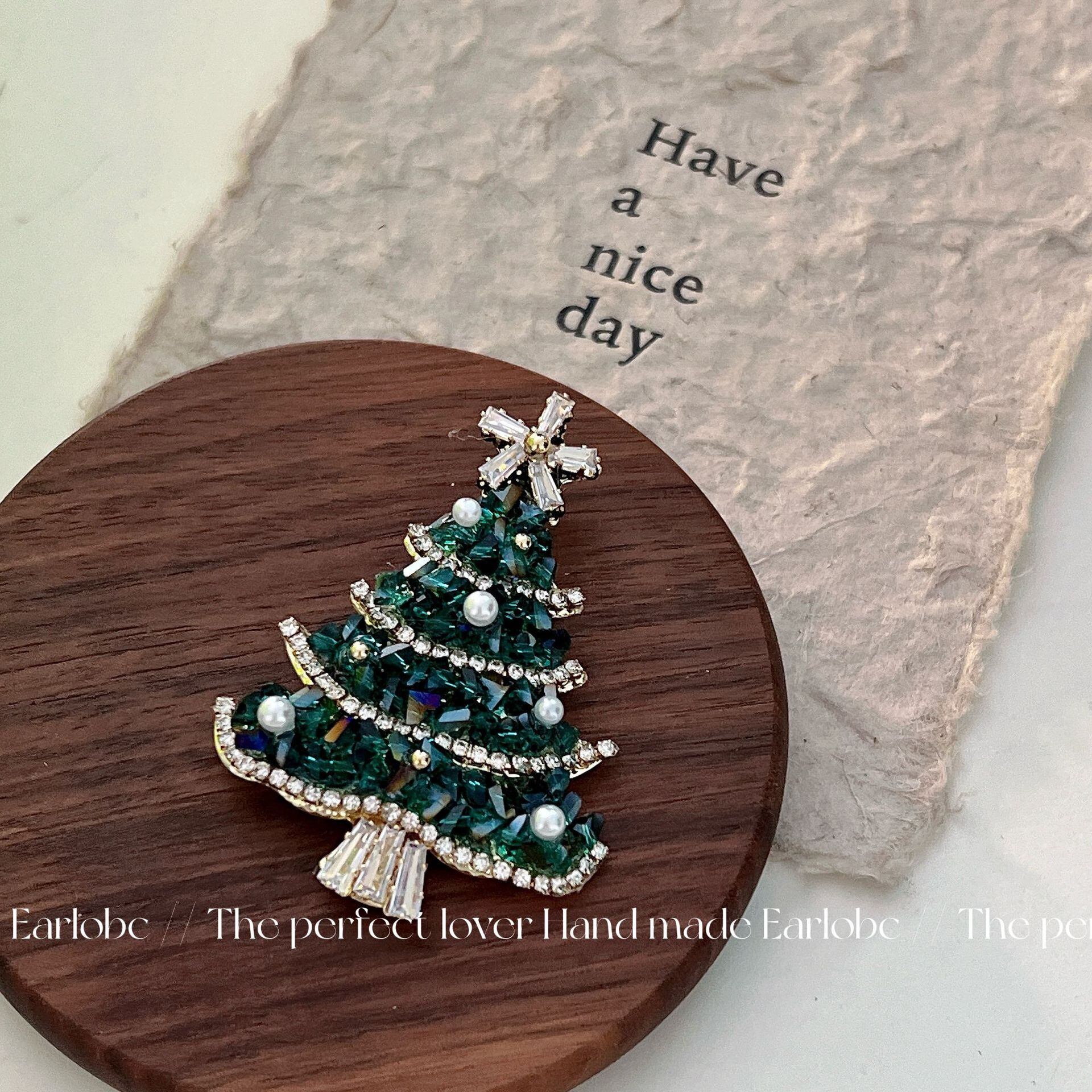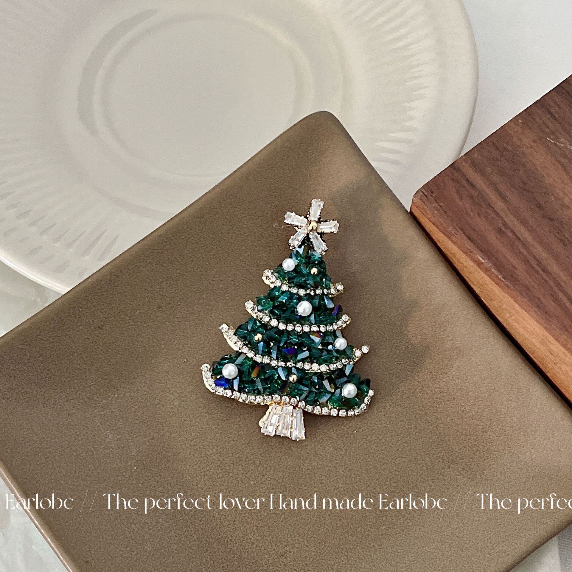 天然パール 天然クリスタル キュービックジルコニア クリスマスツリー ブローチ 手作り 高級感 精巧 ファッション ブローチ ピン 女性用 ドレスアップ アクセサリー afs010(27-2) | iFASHION