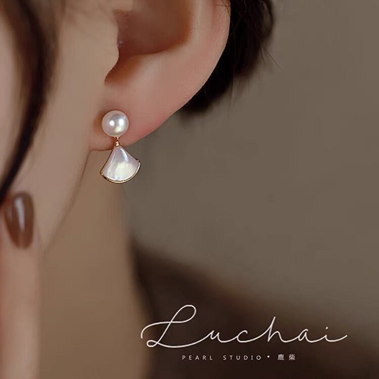 素材:ゴールドメッキ - 淡水パール 扇形ピアス