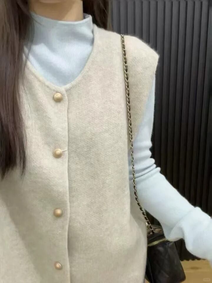 秋冬新作!小立領ニットセットアップ - ソフトカーディガン&ベストの2点セットFS-002