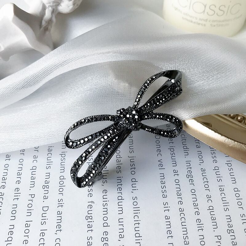 2枚入セット!ラメが煌めくダークブルーのヘアピン!欧米風レトロなダイヤモンドスプリングクリップ|韓国風前髪ピンで気品アップ♡リボンデザインの大人可愛いヘアアクセサリー YP-003
